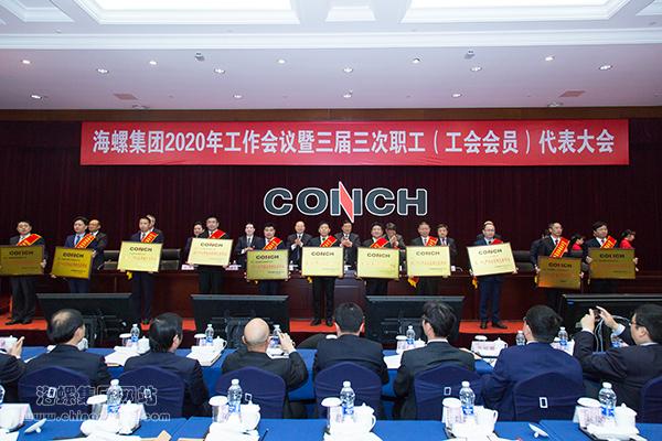 只爭(zhēng)朝夕加油干,不負(fù)韶華再向前。2020年元月10日,海螺集團(tuán)2020年工作會(huì)議暨三屆三次職工(工會(huì)會(huì)員)代表大會(huì)在總部召開。來自集團(tuán)部室及直屬子公司、海螺水泥股份公司、國貿(mào)集團(tuán)公司、海螺型材股份公司、海螺投資公司等各產(chǎn)業(yè)板塊的400余名職工代表、工會(huì)會(huì)員代表、工作會(huì)議代表激情滿懷、齊聚一堂,共商發(fā)展大計(jì),推動(dòng)企業(yè)高質(zhì)量發(fā)展再上新臺(tái)階。