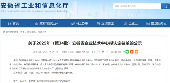近日,安徽省工業(yè)和信息化廳公布了2025年(第34批)安徽省企業(yè)技術(shù)中心擬認(rèn)定名單。安天利信憑借卓越的自主創(chuàng)新能力、持續(xù)的科技研發(fā)投入和完善的創(chuàng)新體制機(jī)制,成功入選。