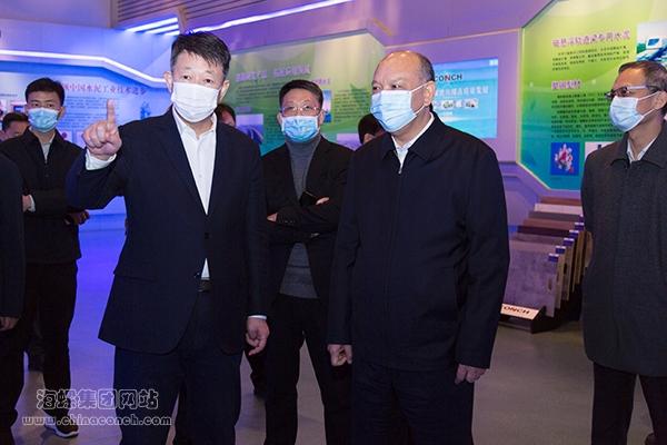 隨后,李建中一行來到海螺集團(tuán)展廳,參觀了解了海螺集團(tuán)發(fā)展歷程、產(chǎn)業(yè)布局和科技創(chuàng)新等情況。王誠介紹,海螺集團(tuán)堅持創(chuàng)新引領(lǐng)、數(shù)智賦能、綠色發(fā)展,實(shí)施“殲30”創(chuàng)新發(fā)展行動計劃,打造雙跨工業(yè)互聯(lián)網(wǎng)平臺,加大研發(fā)投入,加快招引創(chuàng)新人才和創(chuàng)新團(tuán)隊,全力推進(jìn)雙招雙引,積極發(fā)展新材料、新能源等新興產(chǎn)業(yè),構(gòu)建全生命周期的高端化、數(shù)字化、綠色化產(chǎn)業(yè)生態(tài)圈,做強(qiáng)做優(yōu)做大主導(dǎo)產(chǎn)業(yè),做長做寬做高產(chǎn)業(yè)鏈條,推動企業(yè)加速向高新技術(shù)企業(yè)轉(zhuǎn)變、產(chǎn)業(yè)加速向戰(zhàn)略性新興產(chǎn)業(yè)轉(zhuǎn)型、管理加速向世界一流轉(zhuǎn)軌。