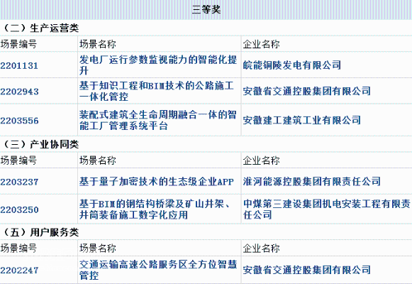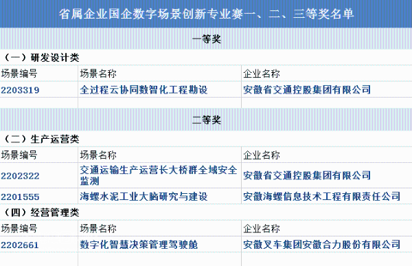 此次比賽中,安徽省屬企業(yè)共有1個(gè)應(yīng)用場景獲得一等獎,3個(gè)應(yīng)用場景獲得二等獎,6個(gè)應(yīng)用場景獲得三等獎。