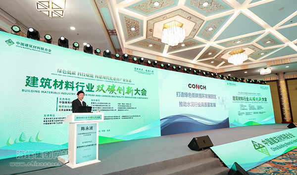 海螺集團(tuán)總經(jīng)理助理陳永波在雙碳創(chuàng)新大會(huì)上發(fā)言