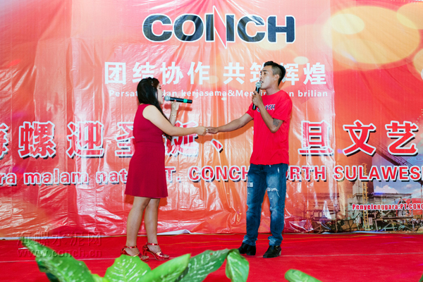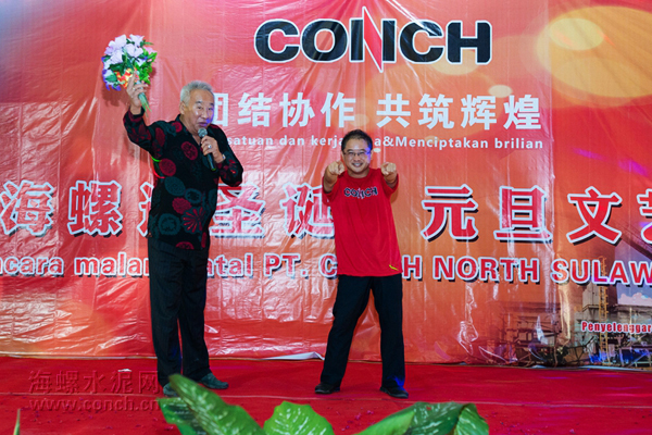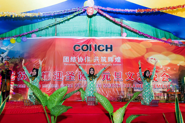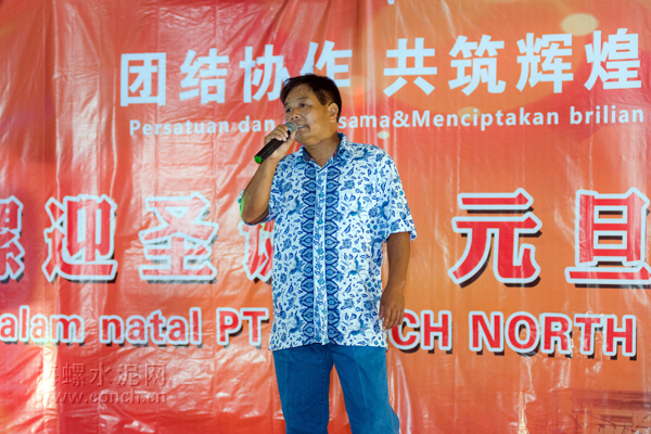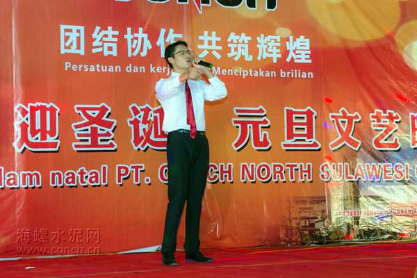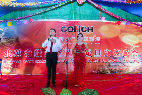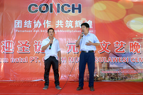 北蘇海螺總經(jīng)理曾國華、PT.SULENCO BOHUSAMI CEMENT公司董事長卓瑞瑞分別為晚會致辭。他們表示,從2015年5月5日海螺水泥與PT.SULENCO BOHUSAMI CEMENT公司正式簽約并成立北蘇海螺水泥公司以來的一年半時間里,在各方的幫助與支持下,北蘇海螺全體干部員工只爭朝夕、奮力拼搏,項(xiàng)目已全面進(jìn)入設(shè)備安裝階段,進(jìn)展之快,不但創(chuàng)造了印尼國之最,也創(chuàng)造了中國海外投資之最。展望即將到來的一年,讓我們更加緊密的團(tuán)結(jié)起來,共筑輝煌!曾總代表公司感謝各位朋友、嘉賓的到來,向中國籍、印尼籍員工致以節(jié)日的問候。