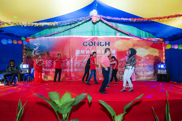 2016年12月23日晚,北蘇海螺廠區(qū)內(nèi)張燈結(jié)彩,在公司宿舍區(qū)籃球場,以“團(tuán)結(jié)協(xié)作、共筑輝煌”為主題的迎圣誕、元旦文藝晚會在這里隆重舉行。公司全體員工、合作方PT.SULENCO BOHUSAMI CEMENT公司,承建單位以及廠鄉(xiāng)睦鄰,歡聚一堂。