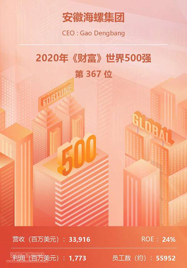 8月10日,《財(cái)富》雜志公布“2020世界500強(qiáng)企業(yè)”排名榜單,海螺集團(tuán)以339.16億美元的營(yíng)業(yè)收入位居第367位,較2019年大幅提升74位?!敦?cái)富》同時(shí)發(fā)布了“2020年世界500強(qiáng)排名提升和下降最多公司”榜單,海螺集團(tuán)位居排名提升最多公司榜單第13位,在中國(guó)企業(yè)中排名第4。